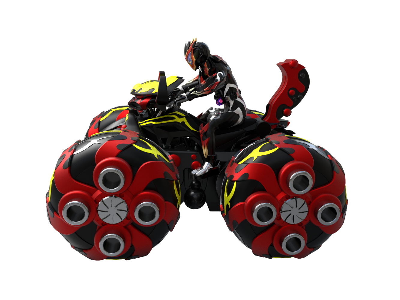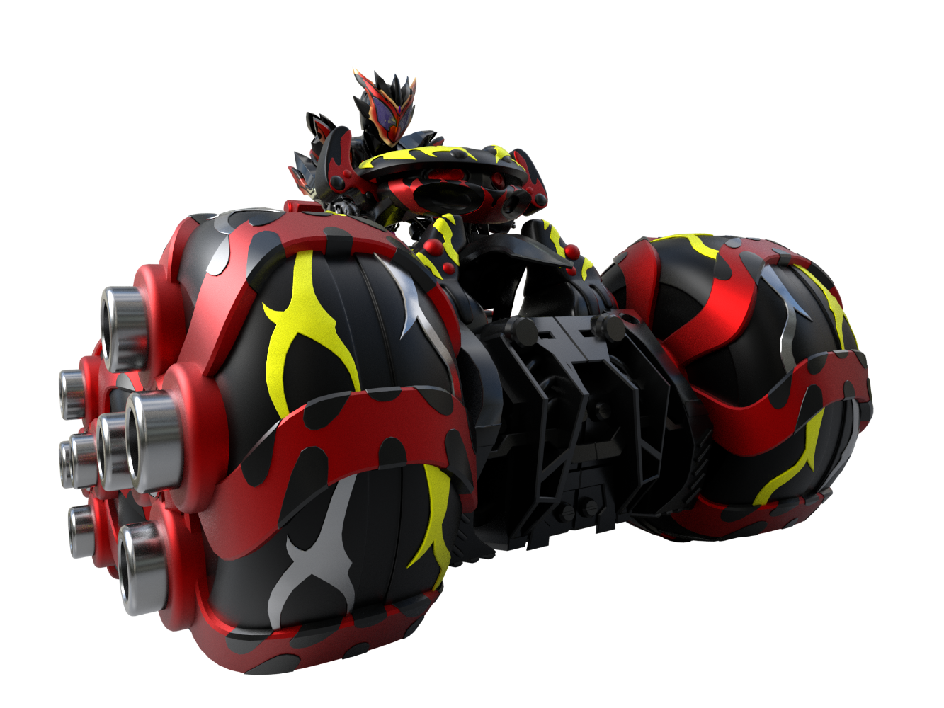 建造物の壁面や悪路を大型の車輪で走破しつつ、車輪から炸裂弾を連続発射して敵を攻撃する。
