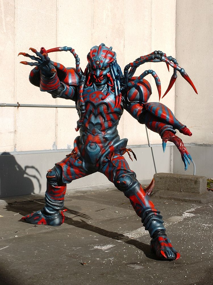 体色は青紫をベースに放射状の赤いラインが全身に描かれている。胸部と腕部には赤いドクロのような模様も確認でき、不気味さを引き立たせている。