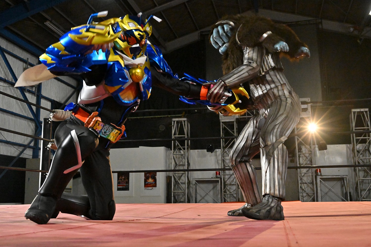 仮面ライダーガッチャード スチームホッパーを倒した後、旭光一郎とレスラーGに鍛え上げられた一ノ瀬宝太郎=仮面ライダーガッチャード アントレスラーと再戦。
