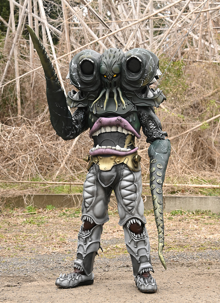 伸縮自在の両腕をムチのように叩きつける他、両肩部の穴などからも触手を伸ばすことが可能。