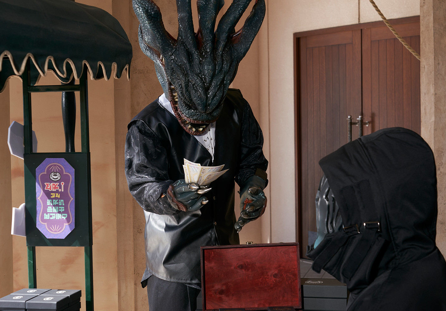 街中にはエージェントが営む お菓子屋があり、そこで普通のお菓子を買う親子もいれば、闇菓子の噂を聞きつけて大金を手に現れる者も存在する。