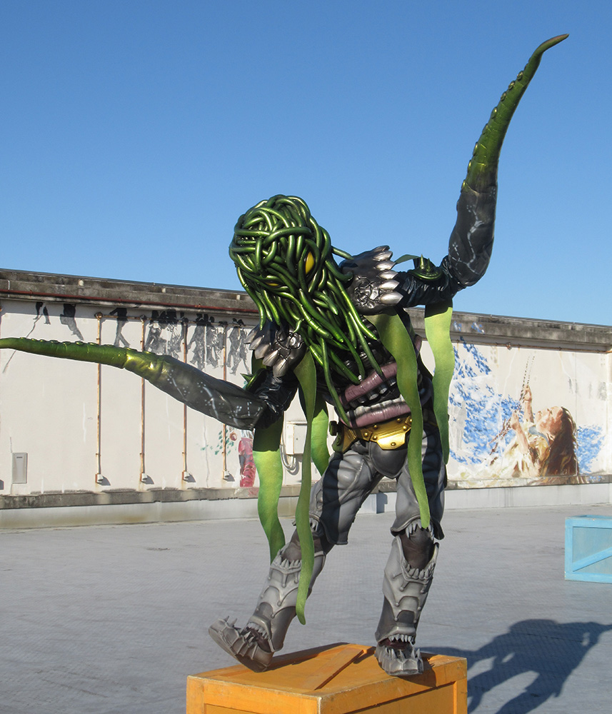 伸縮自在の両腕をムチのように叩きつける他、ヒップアタックや粘液攻撃を繰り出して戦う。